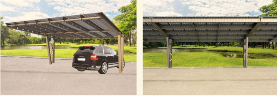 Designercarport mit Stahl-Sparrenkonstruktion und Carport mit Stahl-Pfettenkonstruktion