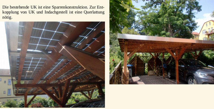 Carport mit gerahmten Modulen im Solid 2-Gestell auf Holzpfetten (Dachsanierung)